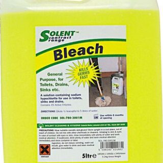 A solution containing 4% sodium hypochlorite, for use in toilets, sinks and drains.