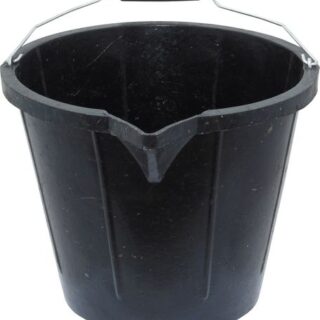 Durable plastic rigid bucket with galvanised steel handle rotating plastic grip. Wide pouring lip and rounded reinforced edge. 3 gallon (14ltr) capacity. Easy to clean smooth interiors and exteriors.