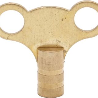 Square opening brass key for use on domestic radiator bleed screws with easy to turn clock key type handle for releasing air from water filled radiators.