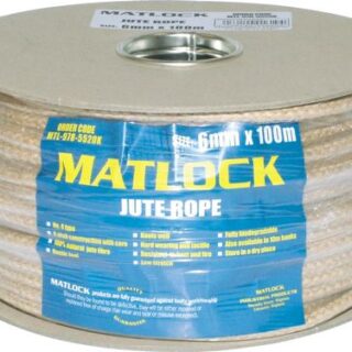 6mm x 100m.No. 4 type.8 plait construction with core.100% natural jute fibre.Rustic feel.Knots well.Hard wearing and tactile.Resistant to heat and fire.Low stretch.Fully biodegradable.Also available in 10m hanks.Store in a dry place.A general purpose rope used by builders, DIYers and gardeners.