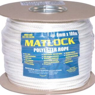 6mm x 100m Reel.No. 4 type.8 plait construction.Centre core.100% Polyester.Mutifilament.High tenacity.Round section.Easy to handle, knot and splice.High abrasion resistance.Resistant to organic and mineral acids, oxidising agents and diluted alkalis.UV resistant.Weather resistant.Low stretch.Smooth running.A general purpose high strength rope, suitable for repairing sash windows. It is used in the building trade, by DIYers and for outdoor activities.