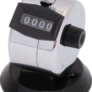 Four digit (0-9999) metal body mechanical counters of sturdy chrome plated steel construction. With push button actuator and reset button. Comfortably fits in the palm of your hand, with finger ring and audible click on each count. Recommended for applications where operator must be mobile such as counting circulation, checking meeting attendance, inventory, etc.