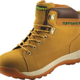The Tuffsafe® BAB 04 safety boot is hard wearing and has deep padded collars to protect your ankles from knocks and bumps and padded tongues to evenly distribute the pressure of the laces across the bridge of your foot coupled with dual density soles the BAB 04 from Tuffsafe maximises comfort all day long. The ‘U’ hooks allow for rapid lacing/unlacing and easy fit adjustment of the boot. Leather upper with a dual density antistatic sole.