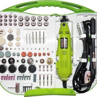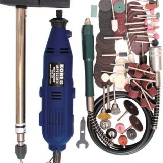 118 Piece Accessory Kit Includes: various collets, cutters, drills, abrasives, brushes, burrs, wheels, discs and mandrels.