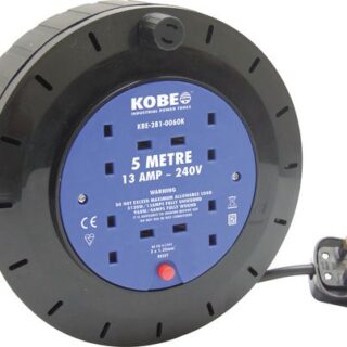 4 socket, 240V/13A versatile cable reels for home and office use. Fully enclosed cassette with built-in carry and winding handle. Conform to BS6500/1363A/EN61242, fitted with a safety cut-out switch.