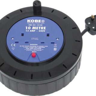 Twin socket, versatile 10m cable reel for home and office use. Fully enclosed cassette with built-in carry and winding handle. Fitted with a safety cut-out switch. Lifetime guarantee.