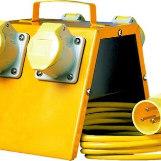 A standard, steel cased 4-way 110v, 16amp distribution box with 5m of 1.5mm cable and