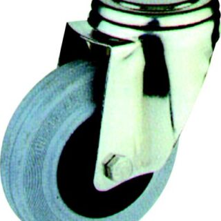 Grey Rubber Tyre, Plastic Centre Wheel with Plain Bore – Swivel Type with Bolt Hole, Zinc Finish