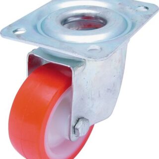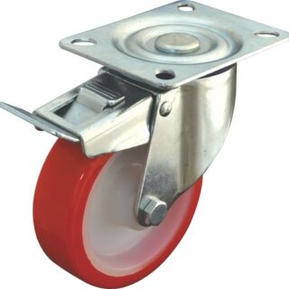 Red Polyurethane Tyre, Nylon Centre Wheel with Plain Bore, Swivel Type with Top Plate, Zinc Finish