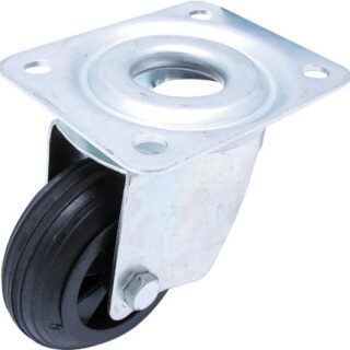 Black Rubber Tyre Plastic Centre – Swivel Type with Top Plate Zinc