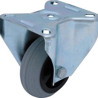 Grey Rubber Tyre, Plastic Centre Wheel with Plain Bore – Fixed-Type with Top Plate, Zinc Finish