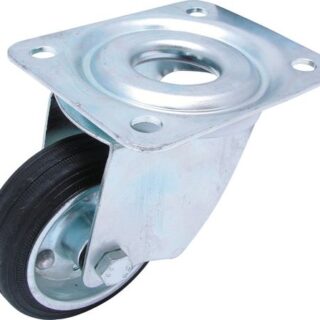 Black Rubber Tyre Plastic Centre – Swivel Type with Top Plate Zinc