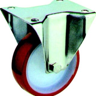 Red Polyurethane Tyre, Nylon Centre Wheel with Plain Bore – Fixed Type with Top Plate, Zinc Finish