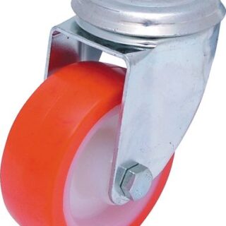 Red Polyurethane Tyre, Nylon Centre Wheel with Plain Bore – Swivel Type with Bolt Hole, Zinc Finish