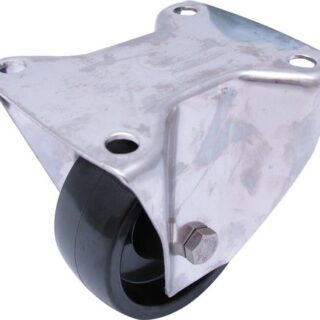 Suitable for use on hard floors (cement, tiles, etc). Non marking rubber tyre. Quiet running with “cushioned” tyre Suitable for humid environments where medium harsh chemicals may be present. Not recommended for use with organic solvents, chlorinated substances, hydrocarbons or mineral oils. Operating temperature range -20C to 60C.