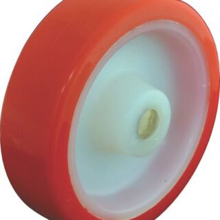 Red Polyurethane Tyre, Nylon Centre Wheel with Plain Bore – Fixed Type with Top Plate, Zinc Finish