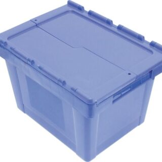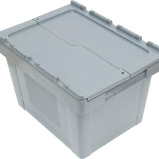 High strength polypropylene Euro boxes with reinforced corners and rims and integral interlocking hinged lids. Smooth flat base allows silent movement on conveyors making them suitable for use in distribution centres or warehouse storage. All containers feature ergonomic hand grips and can be sealed using security tags.