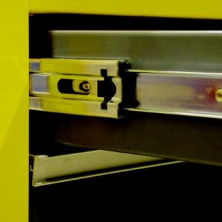 Double thickness side walls with welded joints and a hard wearing epoxy powder coating. I-Beam draw slides with double sliders on base drawer. 100mm rubber castors with brakes fitted to two end castors. Fully locking. Castors are rated to 40kg capacity standing load per castor. Drawer loads should be evenly distributed. Roller cabinets are not suitable for frequent relocation when loaded and should only ever be pushed.