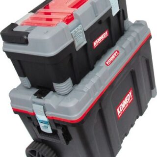Mobile storage solution manufactured from impact resistant plastic, making it ideal for heavy duty use. Features include – soft bi-material handles, padlock eyes, heavy-duty steel catches, side handles for dual lifting, high strength wheels with rubber tyres, integrated footplate to aid tilting, reinforced corners, and lock-in latches to secure the two tool boxes together.