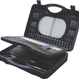 Containing the most commonly used screwdriver bits, nut spinners, Torx bits, drills and adaptors. Supplied in a moulded carry case. Dimensions (W x D x H): 455 x 178 x 297mm.