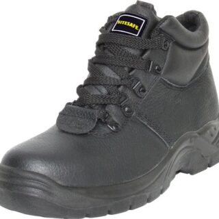 Black. Steel toe and midsole chukka boot/shoe, split leather upper, anti-static properties, dual density PU/PU outsole, padded collar for extra support, padded tongue for extra comfort, lightweight and flexible, S1P specification, fully conforming to EN ISO 20345:2004/A1 2007. Standards. -