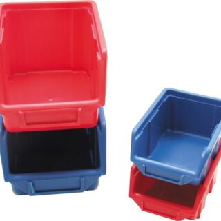 High strength polypropylene storage bins with label holders, designed for component or part storage. Bins can stand alone, be nested on top of each other or hung on louvred panels, allowing you to create the storage system to satisfy your specific requirements. Available in two sizes and two different colours blue and red.