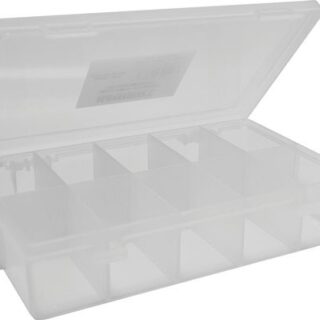 Made from tough Polypropylene. This service case has 10 equal compartments measuring 80 x 40 x 30mm deep. The lid has positive catches and is semi-transparent to view its contents.